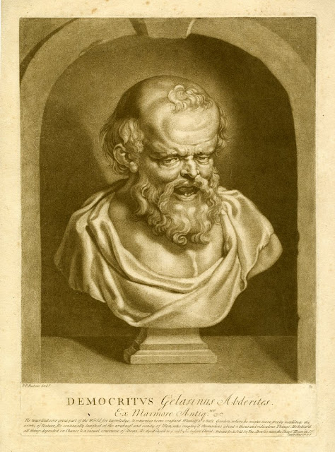 Mezzotint by John Faber the Elder of a bust of Democritus after Rubens. c. 1710.