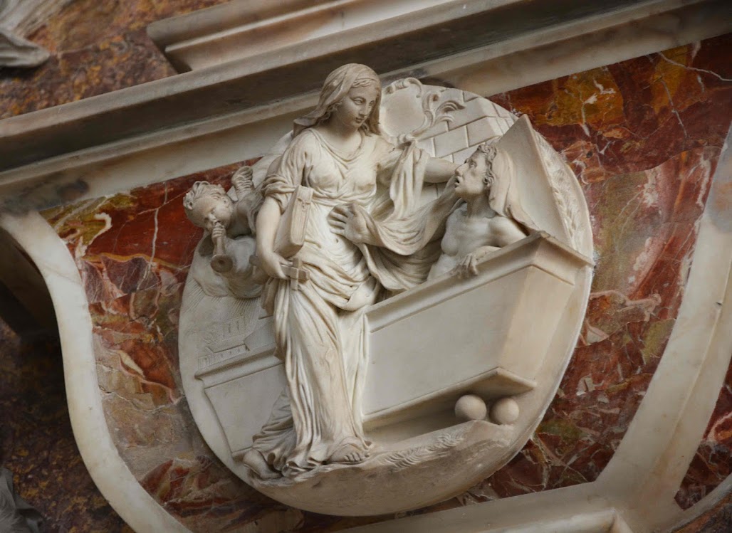 but very much influenced by the monument to Katherine Bovey in Westminster Abbey - designed by James Gibbs and sculpted by Michael Rysbrack. 1727.
