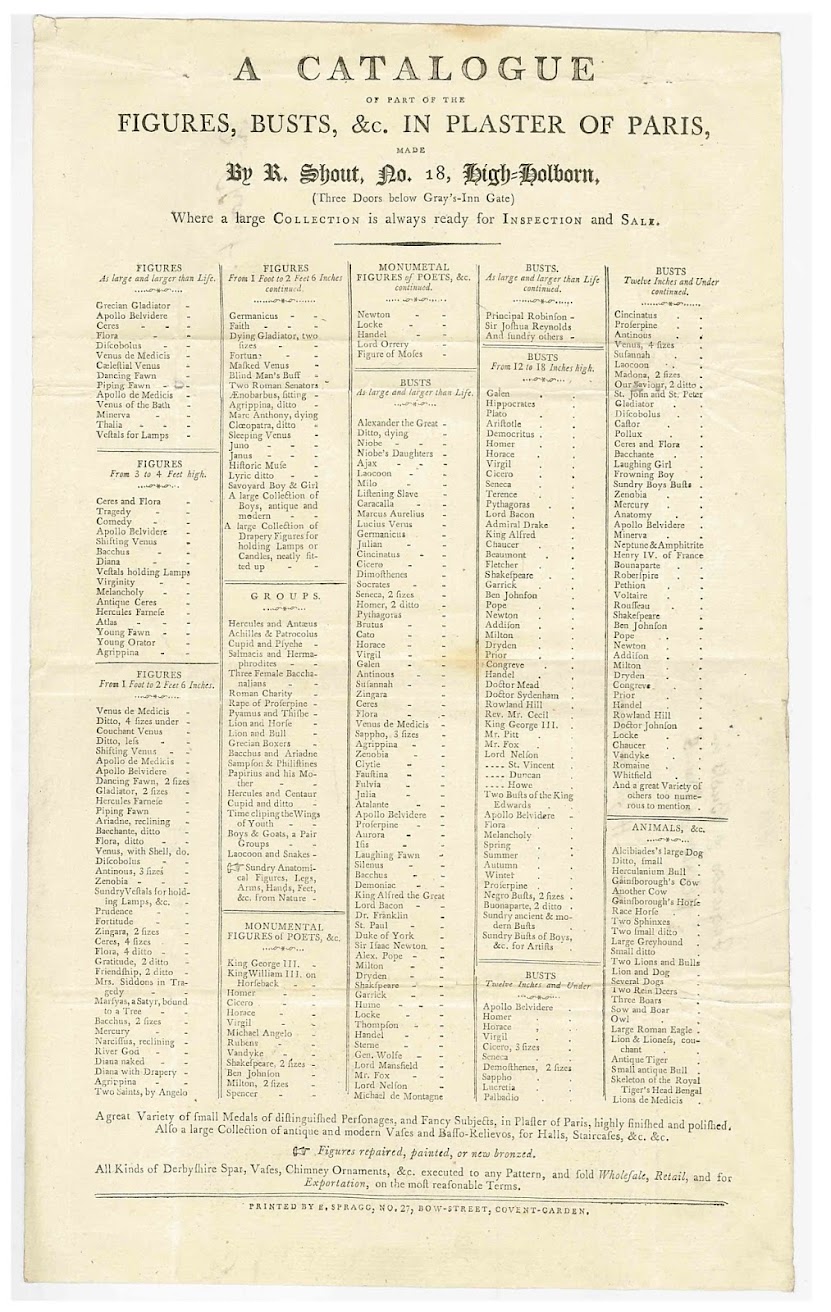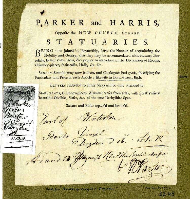 The Cheere bust was later reproduced by Parker of the Strand c 1770 - 76) and later after about 1795 by Shout of Holborn, and then again about 1820 by Sarti (with the eared socle).